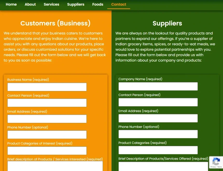 Our client asked our web designers for an ideal color theme that fits his website, and after careful deliberation, we came up with colors derived from the flag of India: saffron, white, and green. Amazingly, these colors also align with some of the featured Indian dishes, and not only do they give the website an aesthetic look, but they also give it a vibrant feel.